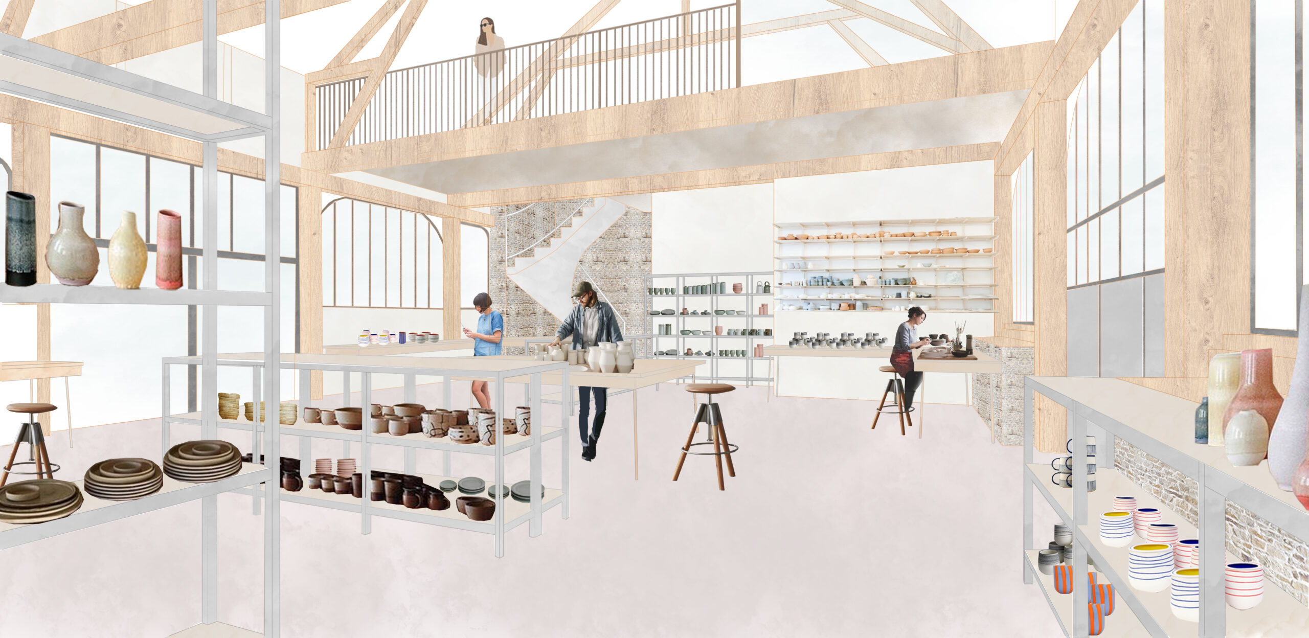 Ce projet est destiné à accueillir des artisans céramistes, mais aussi du grand public (partie boutique) et un public scolaire ponctuellement (ateliers pédagogiques).