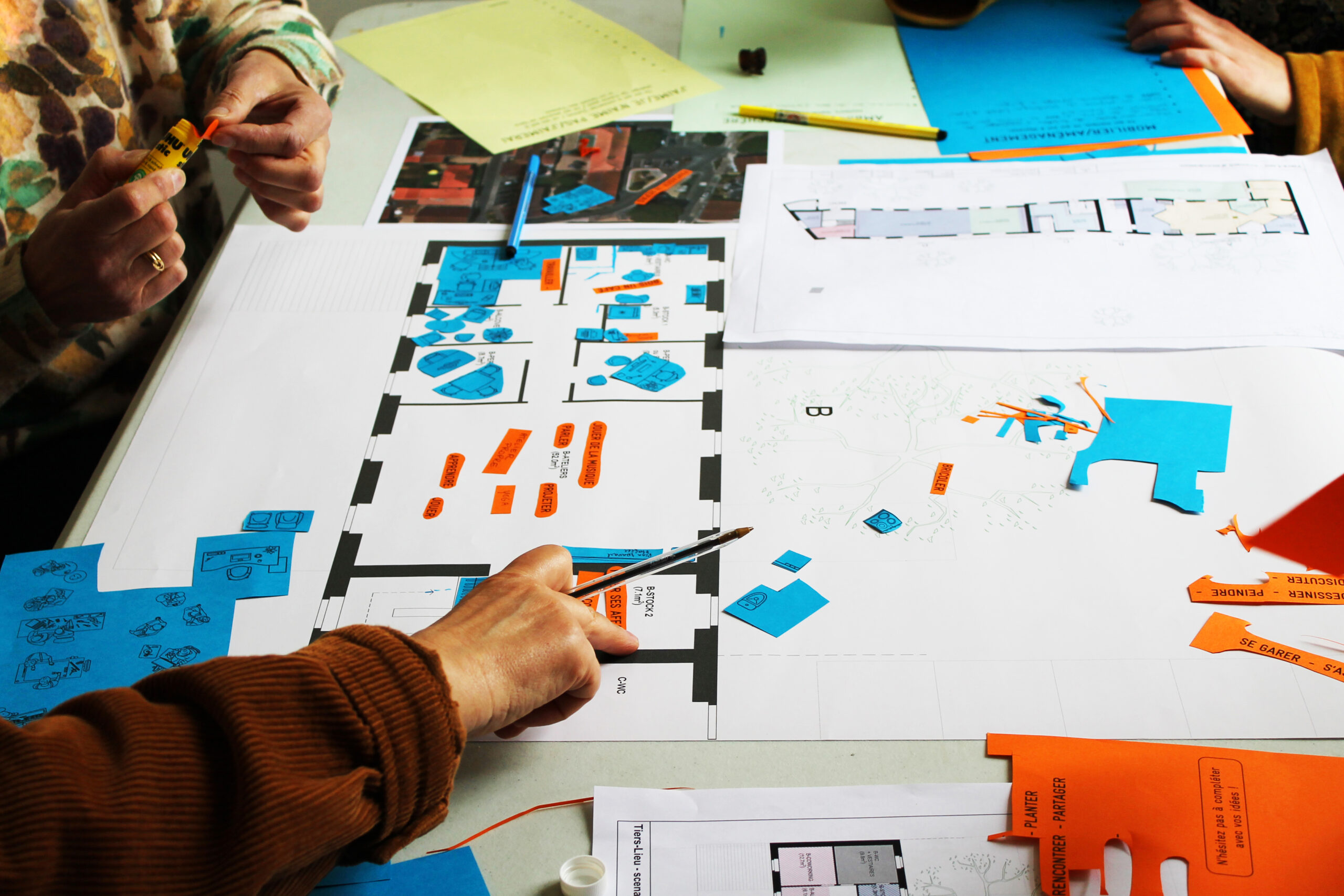 Pendant trois mois, un diagnostic partagé a réuni habitants, associations, jeunes et élus : entretiens, marches exploratoires, stands au marché, ateliers ouverts. De cette intelligence collective sont nés des besoins concrets : convivialité, entraide, création, services, soin. La méthode participative a permis d’esquisser une programmation vivante, adaptée aux rythmes locaux : un lieu évolutif, accueillant, ouvert à l’année, sauf l’été !