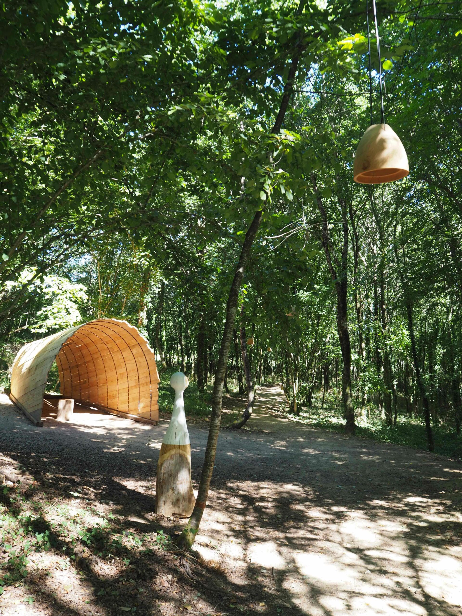 Le site se présente comme un espace naturel boisé caractéristique du Périgord Vert Granitique. Le couvert est maintenu en l'état et rendu accessible par un léger élagage. La densité de végétation est contrôlée pour créer des ouvertures, des passages et des vues dans le sous bois et scénographier un espace de découverte ouvert au sud et plus intimiste au nord. Le bois s’organise dans la pente autour de la place et le chemin des cloches, traverse encastinée et éclairée, la cabane à histoire, l’observatoire de la flore, le sentier du serpent et l’atelier des petits Rapeaux en hommage à Pierre Rapeau, peintre et poète local. Il est signalé par des figurines colorées évoquant la légende d'Abjat.
