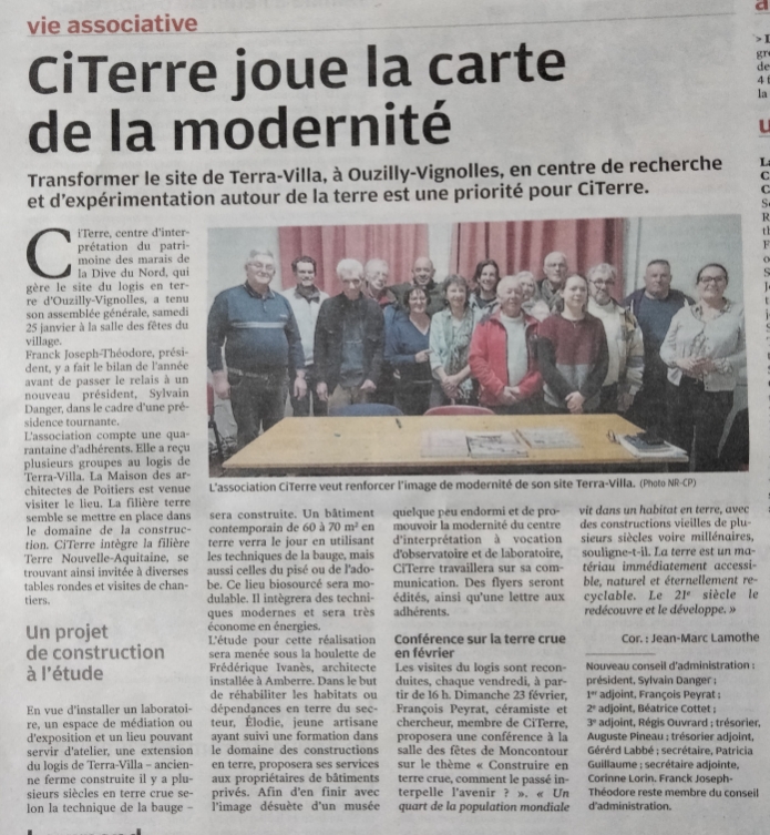 Article de presse NR relatant l’Assemblée Générale annuelle de notre Association CiTerre qui se déroule chaque année en janvier Association CiTerre ayant repris l’article de la Nouvelle République.