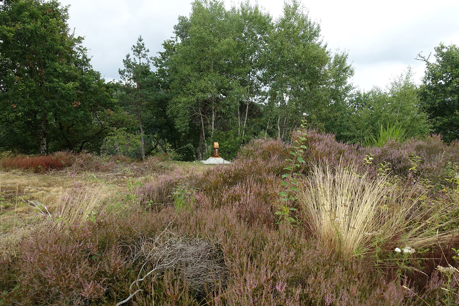 une station du chemin de croix discrètement réhabilitée dans la lande Nicolas Besse - atelier du sillon - Site de Saint-Nazaire, Sarroux Saint-Julien, 2023