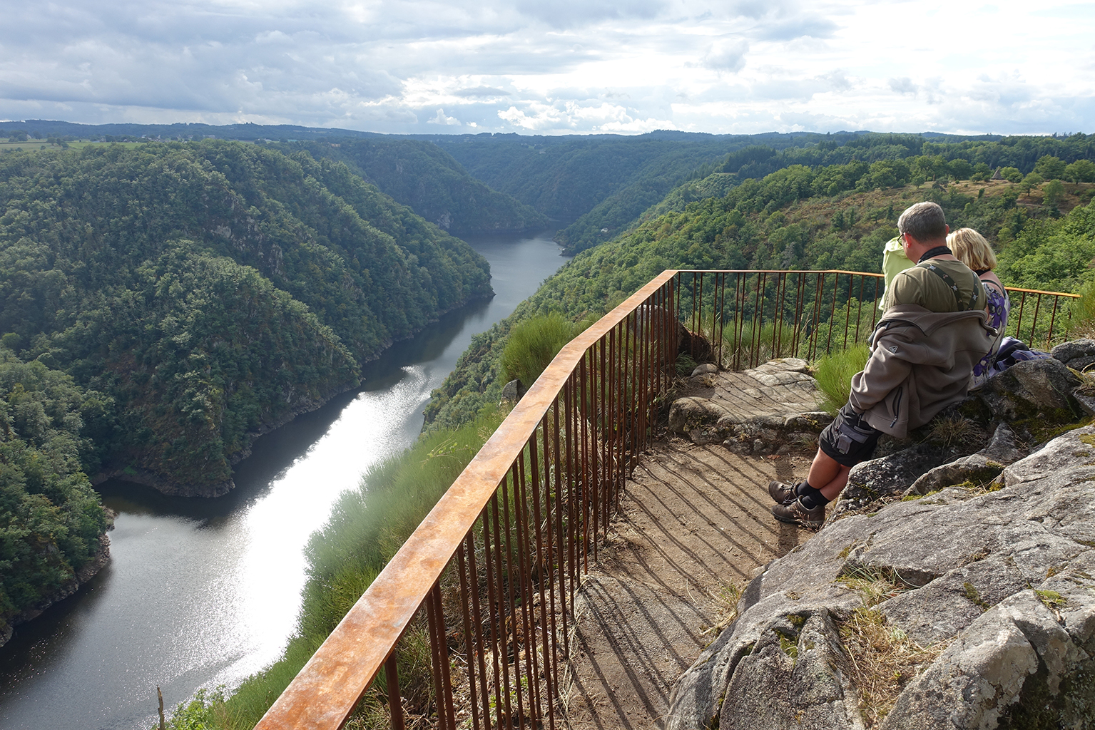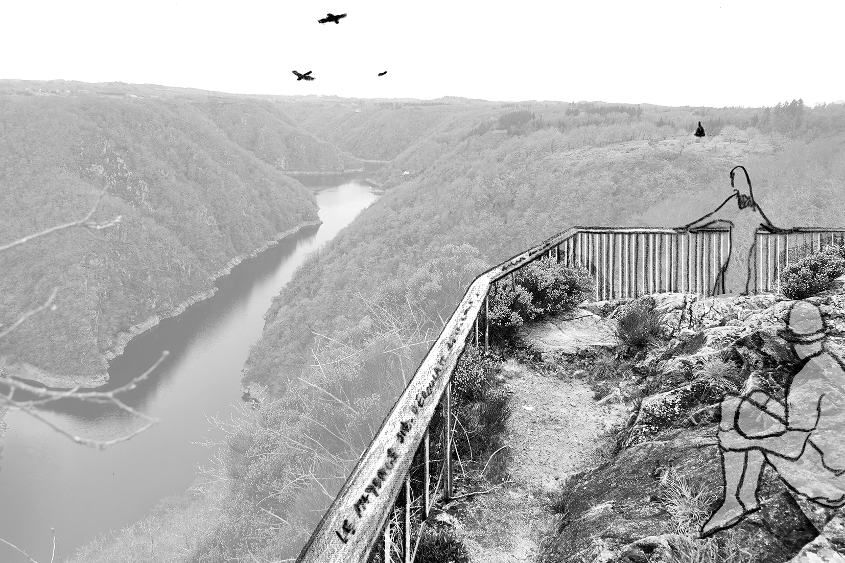 Le site de Saint-Nazaire domine la confluence de la Diège et de la Dordogne. Ce site naturel accueille un chemin de croix, autrefois lieu de pèlerinage, de légendes autour du pas du diable et d’une fontaine miraculeuse. C’est aujourd’hui une promenade populaire sur un sentier de crête, ancrée dans les mœurs locales. Les aménagements successifs accumulés, le mobilier vieillissant ont détériorés l’expérience des usagers sur le site. Certains espaces sont fermés au public pour des raisons de sécurité. Le maître d’ouvrage Haute Corrèze Communauté souhaitait rénover ce site emblématique. Le projet de réaménagement s’inscrit en discrétion, entre préservation des espaces naturels et révélation délicate de la riche histoire des lieux. Le projet vise à supprimer une part des éléments amoncelées, retrouver une cohérence et un socle commun aux aménagements. Il soustrait, épure et retrouve une narration commune autour d’un travail typographique spécifique, inscrit dans les matières qui façonnent le projet. Un belvédère sur la Dordogne est ré ouvert, sécurisé, il s’intègre avec légèreté aux rochers et à la végétation. Le mobilier d’interprétation est limité au maximum et uniquement à l’entrée du site. Une dépliant papier disponible au départ développe l’histoire et les anecdotes du site. Un vocabulaire simple est mis en place pour accompagner les usagers dans la découverte des lieux, sans jamais s’imposer au site : balisage en acier brut, gravures dans le granit, … Une typographie spécifique fait le liant entre ces interventions, souligne le caractère singulier des lieux. Les interventions sont légères : un panneau de tôle émaillé repositionné, un chêne dégagé et une lande réouverte, des bancs rénovés par une association de réinsertion locale, un garde-corps là où le risque de chute devient trop grand. Ainsi le projet s’inscrit dans l’histoire du site et accompagne les nouveaux usages, ceux d’une balade à la découverte des curiosités du site et de la beauté de ces gorges.